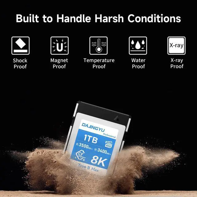 Built to Endure Extreme Conditions:Cfexpress type b Engineered for durability, this card is shockproof, temperature-resistant, and X-ray proof