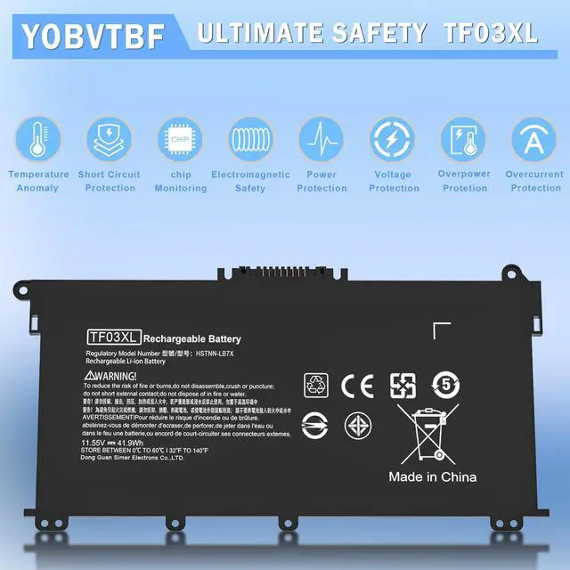 Safety FeaturesThe TF03XL battery is engineered with built-in Overcharge, Overdischarge, Over-temperature, and Short-circuit Protection, guaranteeing security and reliability, and ensuring your laptop operates safely