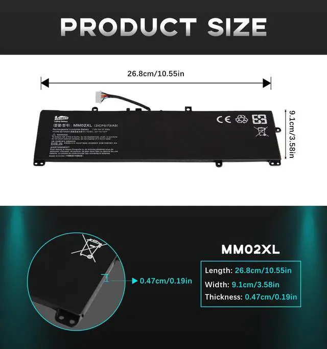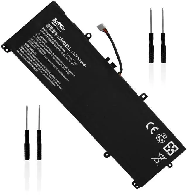 Specifications: Replacement Battery MM02XL for HP, Voltage: 7.6V, Capacity: 37.60Wh, 5921mAh, 2-Cell. Type: rechargeable Li-Polymer battery, Package includes: 1 x MM02XL battery, 1 x 5-IN-1 Screwdriver toolkit, 1 x User Manual. All our brand replacement laptop batteries are 100% brand-new from manufacturer owned by ourselves GBLGBD.
