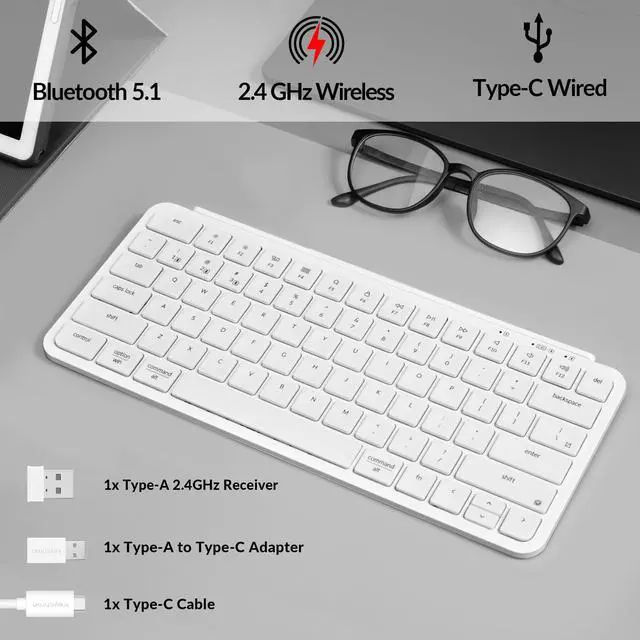 Up To 1200 Hours of Use - Enjoy uninterrupted use with up to 1200 hours of battery life, or about 8 months of use with 5 hours of daily use. The concave keycaps also ensure precise input and comfortable typing to fit your fingers naturally.