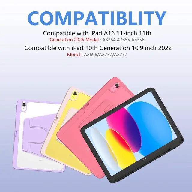 Complete Bundle - Perfect Match: This set includes an iPad A16 case with keyboard clear, an illuminated keyboard, a USB charging cable, a transparent keyboard cover, and a user guide. Choosing this combination solves the keyboard and case color matching issue in one go. Also note that this keyboard case is compatible with the iPad 11th generation (models: A3354/A3355/A3356) and iPad 10th generation (models: A2696/A2757/A27777/A3162). Deep classic black, low-key and versatile. Easily enter and exit any business or study occasion, showing a calm and reliable personal style.