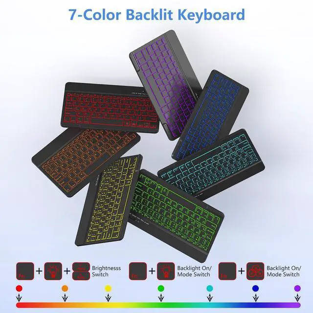 MMK for iPad A16 Case with Keyboard (2025), 7 Color Backlight ^^ Removable keypad with Pencil Holder ^^ 360 Degree ^^ Rotating for iPad 10th Generation Case with Keyboard, Black