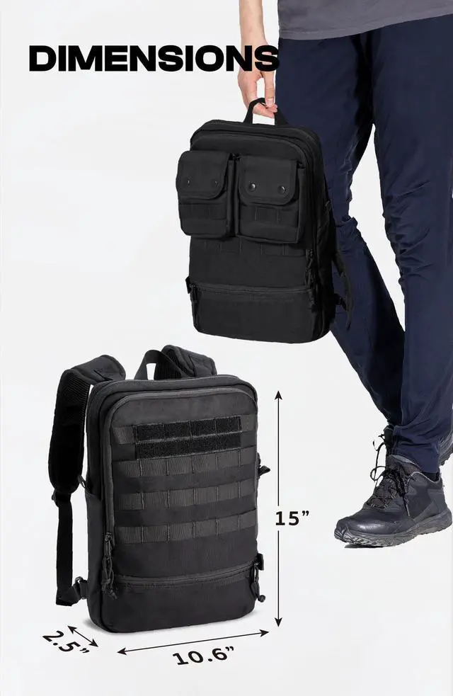Customizable & Durable: Utilize the 6x4 Molle panel for easy attachment of pouches and accessories, tailoring storage space to your needs. Sturdy zippers and reinforced straps ensure longevity.
