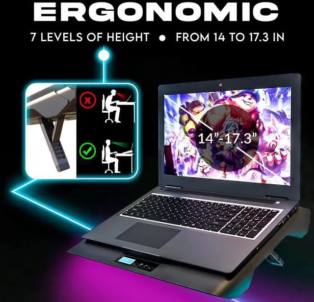KLIM Everest Laptop Cooling Pad ^^ New ^^ Powerful Turbo-Fan 4300 RPM Laptop Cooler ^^ Sealed Foam for Maximum Performance ^^ Avoid Overheating and Protect Your Gaming Laptop ^^ 14- 17.3 in