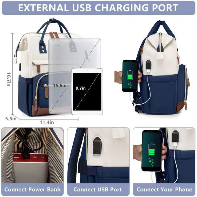 Work Backpack with USB Charging Port- 15.6-inch backpacks for women have an external USB