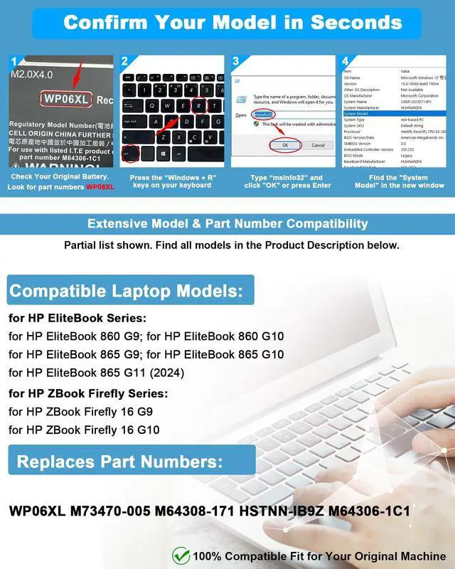 Compatible Laptop Models: Replacement fit for HP EliteBook 860 G9 Series; fit for HP EliteBook 860 G10 Series; fit for HP Elitebook 865 G9 Series; fit for HP EliteBook 865 G10 Series; fit for HP ZBook Firefly 16 G9 Series; fit for HP ZBook Firefly 16 G10 Series; fit for HP EliteBook 865 G11 2024 Series