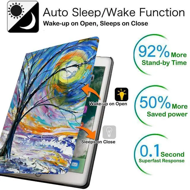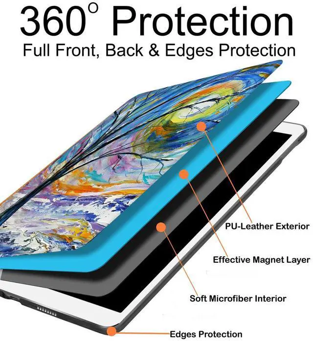 DuraSafe Cases for iPad 9.7 5th 6th Gen Air 1st 2nd Gen [iPad 5 6 Air 1 2] A1893 A1822 A1566 MH2V2LL/A MRM52LL/A Smart Profile Adjustable Viewing Angle Stand Printed Flip Cover - Color Emblem