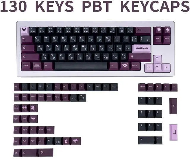 3. Wide Compatibility These purple and pink custom keycaps set consist of 130 keys, suitable for 61/64/68/75/84/87/96/98/104/108 mechanical and optical keyboards, and any "+" Key switches, it is a good choice for you to DIY your mechanical keyboard.