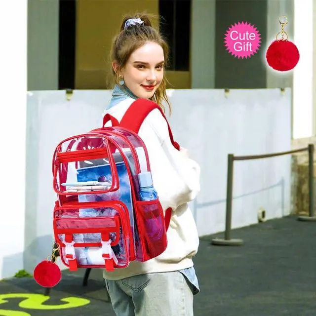 UFNDC 3PCS Clear Backpack Heavy Duty, See Through School Bag for Women, Red Transparent Bookbag