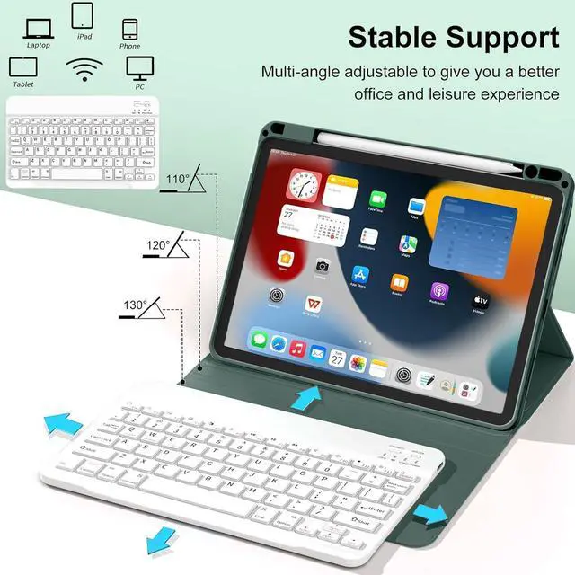 Long Battery Life & Multi Angle Support Built-in industry-high rechargeable Li-polymer battery make the wireless keyboard of this iPad air 5th generation keyboard stand by for more than 3 days after 2-3 hours of full charge. The protective shell can be placed at different tilt angles to adjust the optimal viewing angle, v