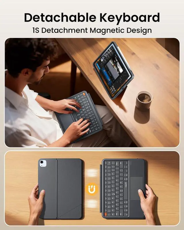 Magnetic Detachable DesignThe keyboard attaches and detaches instantly via strong magnets. Type with it attached, then simply remove it for a lightweight tablet mode perfect for reading, watching videos, or sketching, Supports landscape/portrait orientation (includes magnetic pen holder)