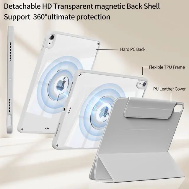 Full Coverage Protection: The protective case consists of a clear acrylic inner shell and a leather hard shell detachable outer shell with microfiber lining and shockproof TPU side frame, providing 360° all-round ultimate protection for your iPad