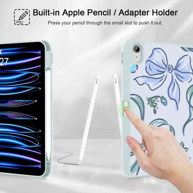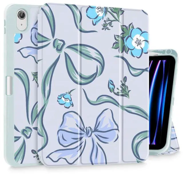 Mektron Case for iPad Air 11 inch (M3 2025 7th /M2 2024 6th), Compatible with iPad Air 10.9" (2022 5th Gen /2020 4th Gen) Tablet Cover Buit in Pencil Holder with Auto Wake/Sleep, Bows C355