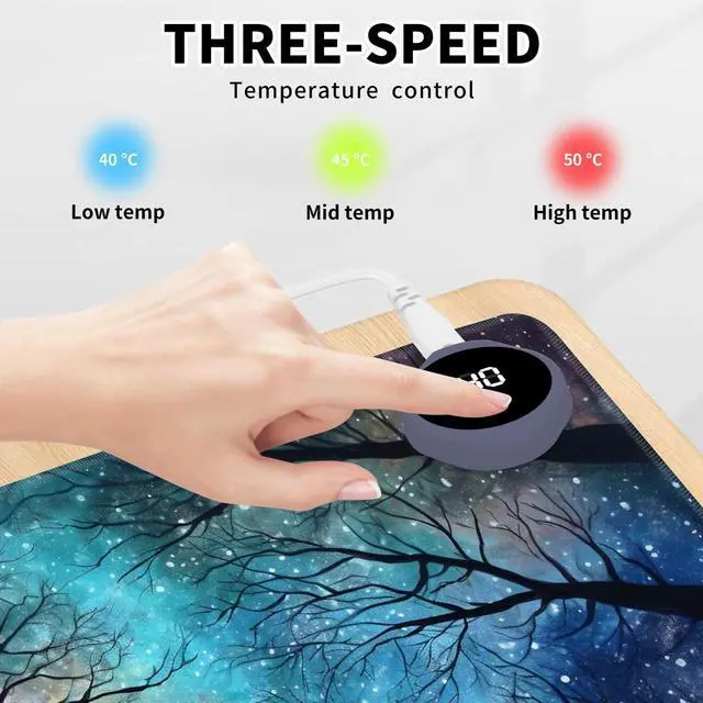The heated desk mat has three temperature settings(40°C, 45°C, or 50°C) and digital display, allowing you to customize the heat level according to your preference. The double-layer heating sheet of mouse pad enables rapid heating, just 15 seconds, you can feel significant heat. Uniform and stable heating can make your body warm anytime, anywhere in the winter.