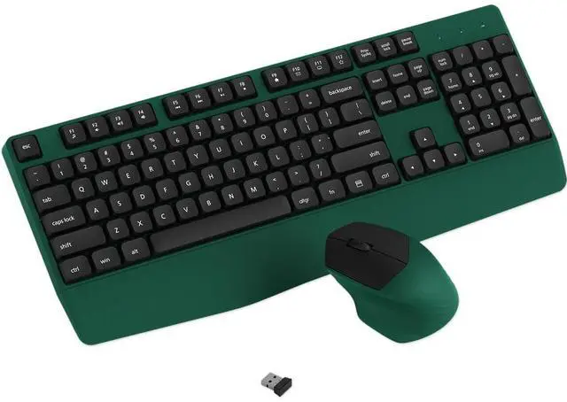 COVEVA Wireless Keyboard and Mouse Combo, Ergonomic Keyboard with Wrist Rest and Wireless Mouse, 2.4Ghz Wireless Connection, Compatible with PC/Laptop/Windows/Mac for Home and Office Use (Black Green)