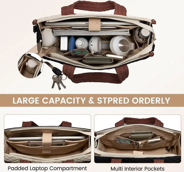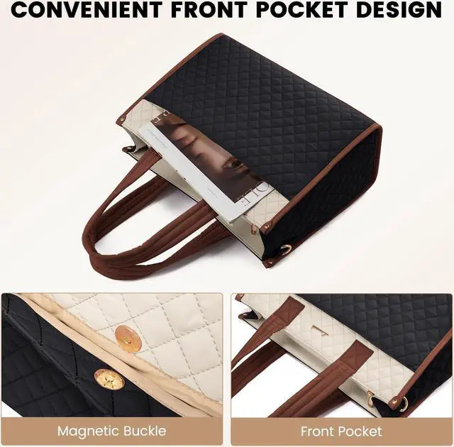 LOVEVOOK Laptop Bag for Women,15.6 Inch Laptop Tote Bag,Quilted Work Tote Bags Women, Professional Computer Business Teacher Tote Bag Office Briefcase Purse,Lightweight Shoulder Travel