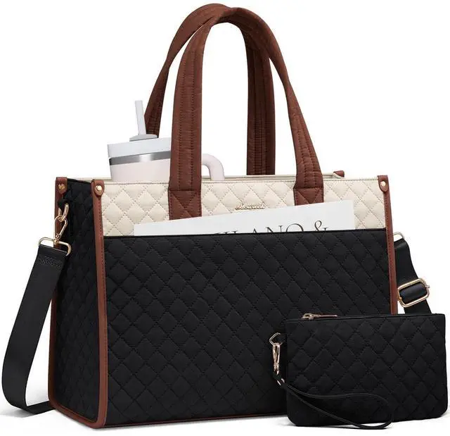 LOVEVOOK Laptop Bag for Women, 15.6 Inch Laptop Tote Bag, Quilted Work Tote Bags Women, Professional Computer Business Teacher Tote Bag Office Briefcase Purse, Lightweight Shoulder Travel