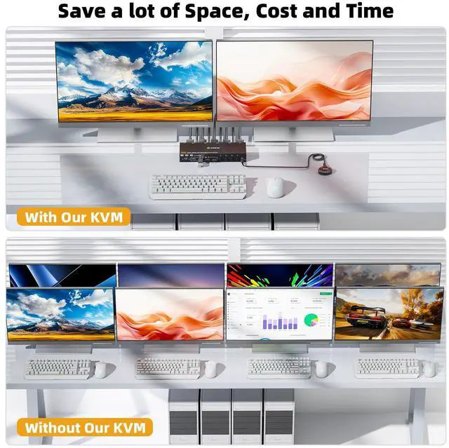 4 Computers 2 Monitors DP+HDMI KVM Switch