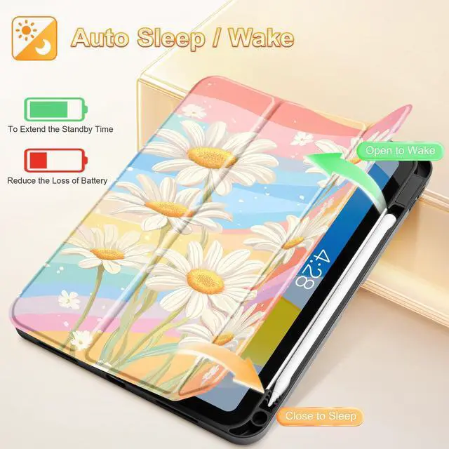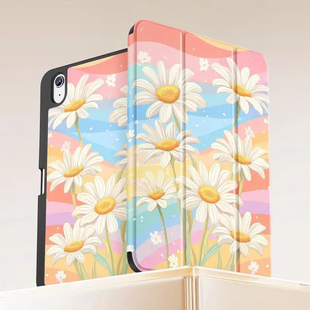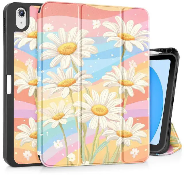 Mektron Case for iPad (A16) 11th Generation 11-inch 2025 Fit iPad 10th Gen 10.9 inch 2022, Tablet Cover with Trifold Stand + Pencil Holder + Auto Wake/Sleep + TPU Back Cover, Colorful Daisy