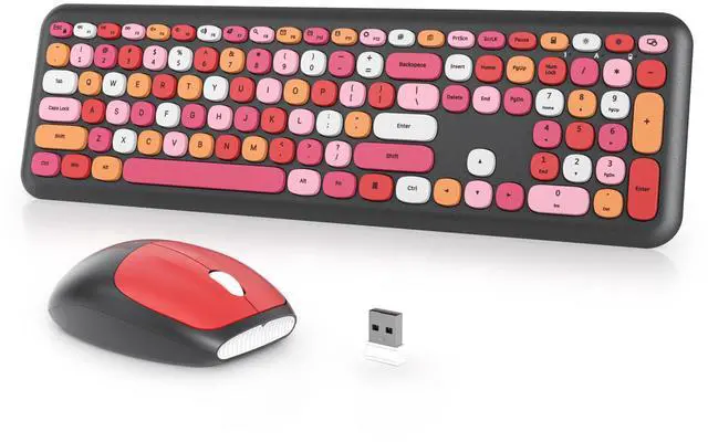 110-Key Full Size Red keyboard and mouseThis cute typewriter wireless keyboard with numeric keypad uses noise-canceling keys, while the retro round concave key caps fit the shape of your fingertips and can be pressed comfortably, just like Like on old typewriters, your hands won't get tired even if you work for a long time.