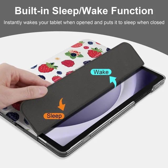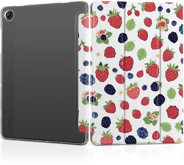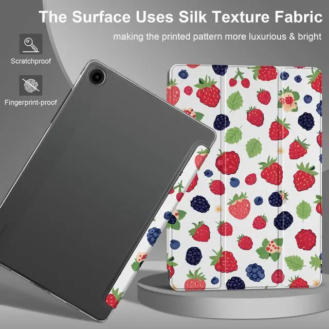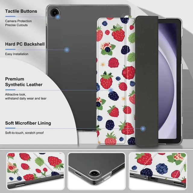 MEEgoodo for Samsung Galaxy Tab A9 Plus 11 inch Case 2024 2023 (Fit Model SM-X210/X216/X218), A9+ Tablet Cases with Silk Texture & PC Clear Back Cover, Colorful Raspberries