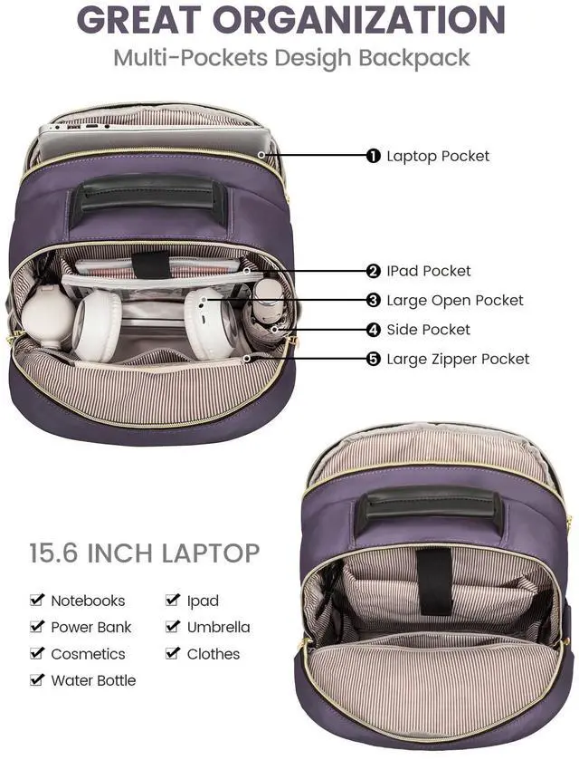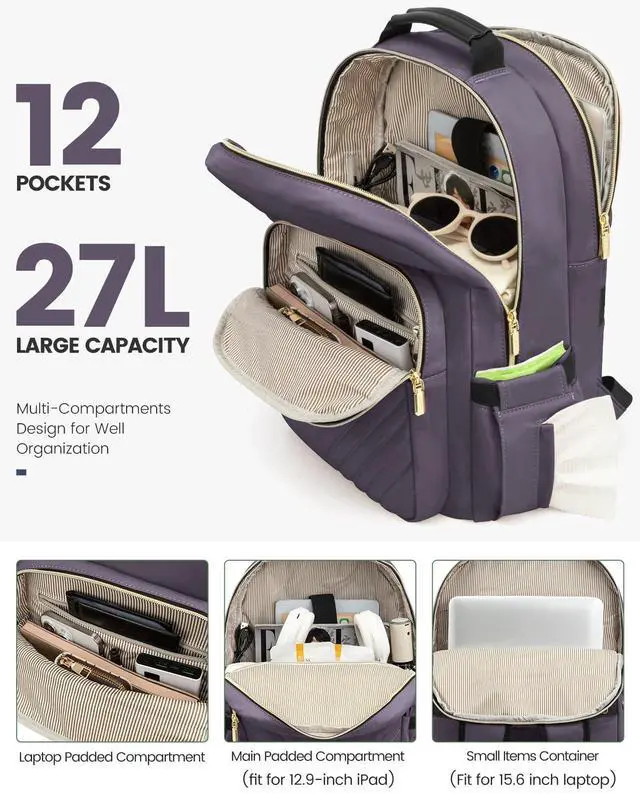 LAPTOP PROTECTIONThe laptop backpack is designed with 15.6-inch laptop separate compartments and a 12.9-inch iPad slot; with cushioned cotton sewn around, it maximizes physical protection of your electronic devices.