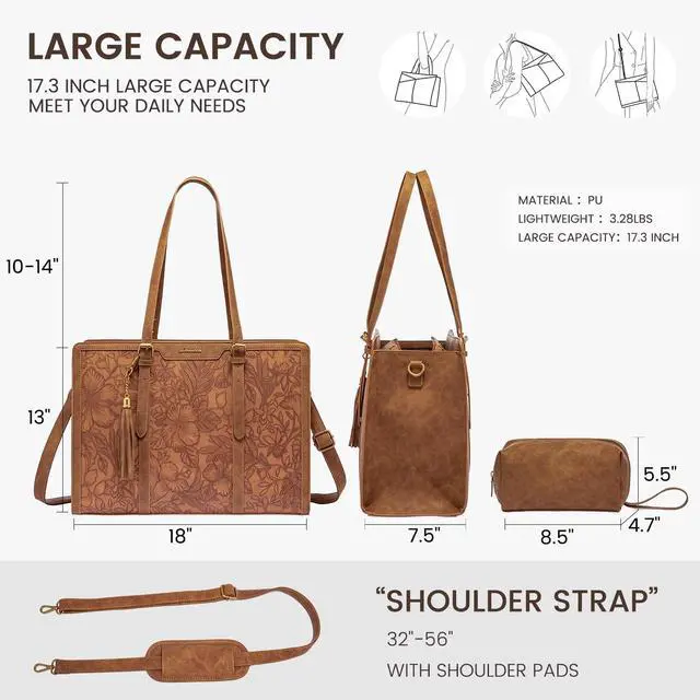 Elegant Laptop Tote Bag & Stand Upright This laptop bag for women combines vintage charm with modern fashion, making it a classic accessory that never goes out of style. Its metal feet ensure that the work bag stands upright and maintains its shape, adding to its overall sophisticated look.