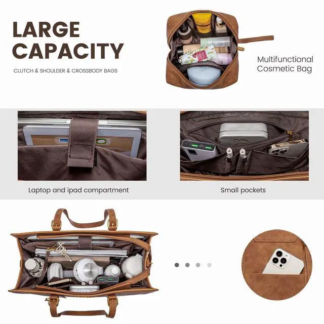 LOVEVOOK Laptop Bag for Women Vintage Leather Work Tote 15.6 inch Large Capacity Computer bag with Clutch Purse for Office, Travel, Casual