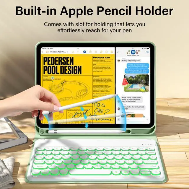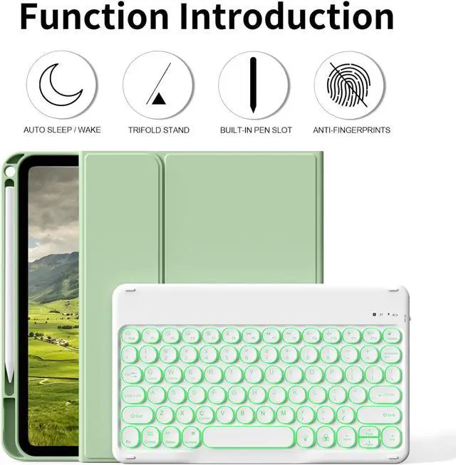 kenke for iPad 11/10th Gen Case with Keyboard 11/ 10.9 inch 2025 A16/2022, Detachable Wireless Bluetooth Keyboard Case with Left Side Pencil Holder, Backlit White Circular Keycaps (Matcha Green)