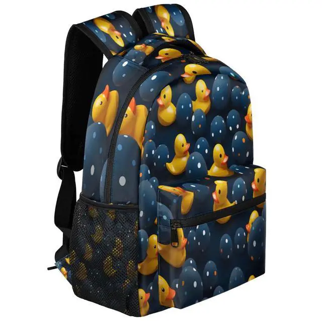 Large Capacity Backpack: 16*11.4*6.9 inches. The main zipper pocket of the bookbag has a laptop compartment to secure your computer. The spacious pocket can easily store your laptop, textbooks and binder. The front large opening zipper compartment is very convenient for storing stationery, keys, bus cards, mobile phones and other small items. The left and right mesh bags can fix your water bottles, umbrellas and headphones.