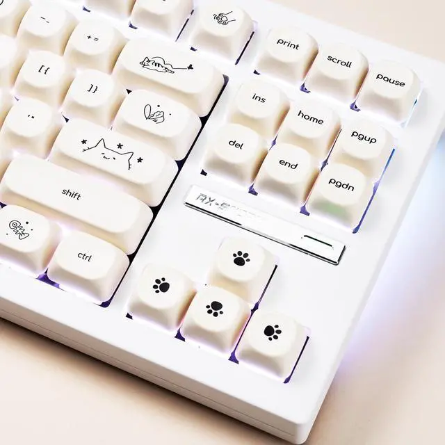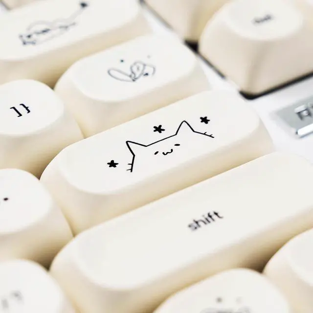 Cute Cat Keycaps: These minimalist themed MOA keycaps, featuring a milk like pure white color palette, the artistic depiction of cute little cat, add a pleasant element to your keyboard. Let you always feel the companionship of the little cat.