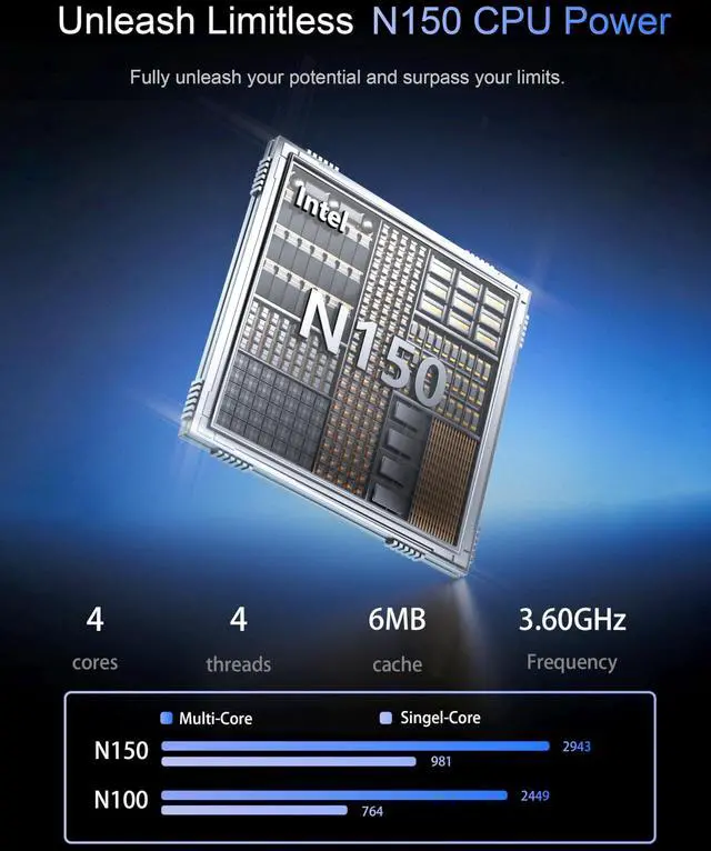 Balanced Performance: The In tel N150 processor provides a balance between power efficiency and performance, catering to everyday computing needs.