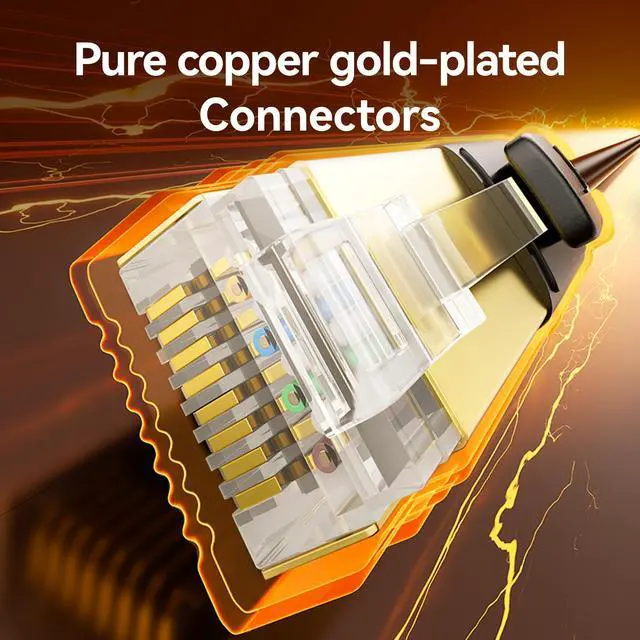 Excellent anti-interference: The Ethernet cable is equipped with 4 shielded foil twisted pairs (F/FTP), pure copper core and gold-plated RJ45 connectors to reduce interference, noise and crosstalk, making the network faster and more stable