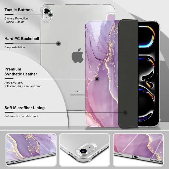 The translucent frosted back cover lets you see the Apple icon in your favorite color, while the front cover combines a premium PU exterior, microfiber lining, and soft TPU for excellent scratch, impact, and drop protection to ensure long-lasting protection for iPad