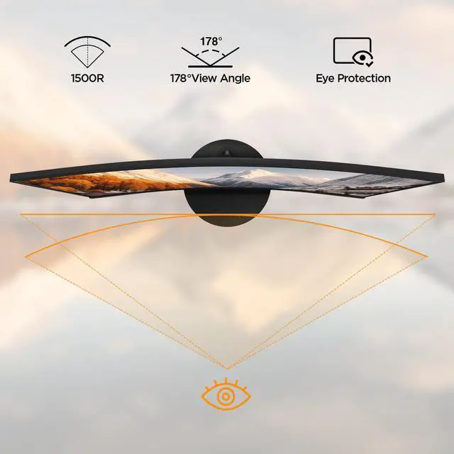 PANORAMIC VIEWING: The 1500R degree curved designKOORUI 27 gaming monitors across an ultra-wide 178°viewing angles,vibrant detail from practically any position with consistent color and image clarity maintained