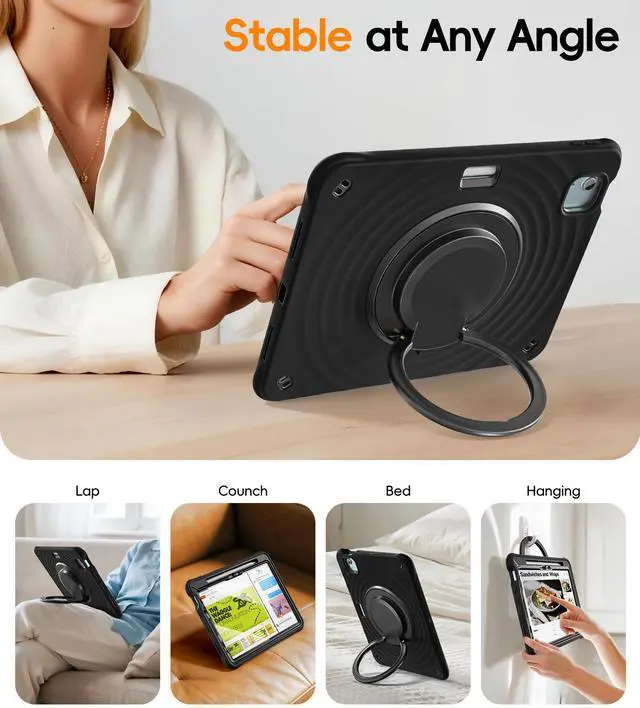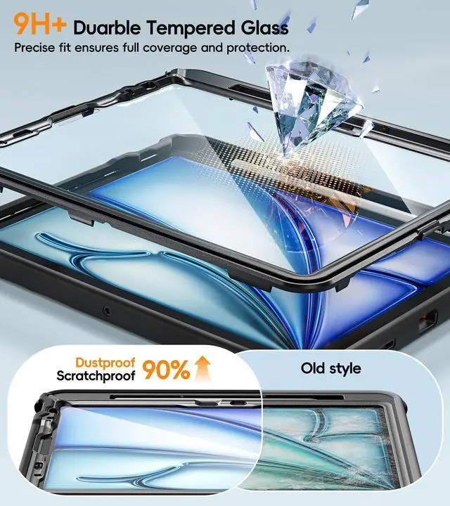 [Upgraded 9H+ Class Screen Guard]This protective case comes with a built-in tempered glass screen protector, designed for your Apple iPad Air 11 inch M3/ M2. It effectively guards against scratches while preserving the original touch sensitivity and Apple Pencil accuracy. The high-definition fused material ensures crystal-clear display quality with enhanced eye comfort. Its smooth surface allows natural writing and drawing, offering both full-screen protection and nice experience.