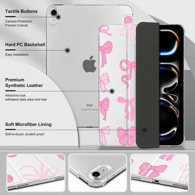 MecBevia Case Compatible with iPad Air 11 Inch M3 (2025) / M2 (2024), iPad Air 10.9 Inch 5th Gen (2022) / 4th Gen (2020), Hard PC Back Cover with Auto Wake/Sleep, Pink Bows