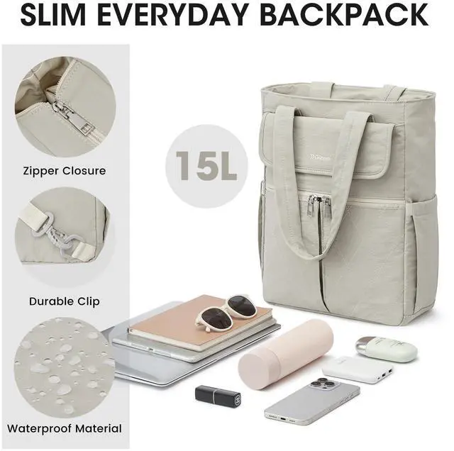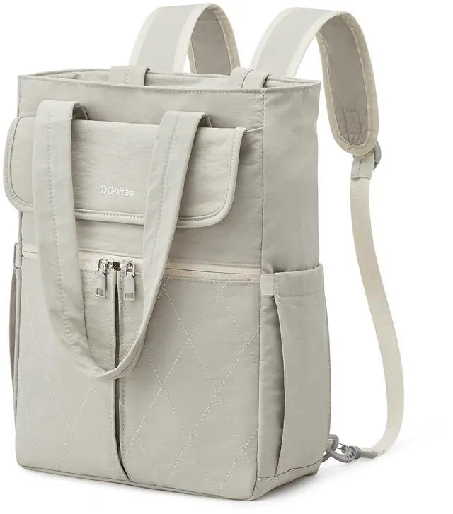 G4Free 2 in 1 Tote Backpack Fits 15" Laptop, Women Bag Daypack for College, Work, Teacher, Nurse -Beige