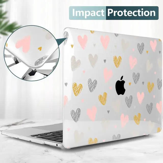 DONGKE for MacBook Pro 13 Inch Case 2023-2016 Release A2338 M2 M1 A2251 A2289 A2159 A1989 A1706 Touch Bar & Touch ID, Hard Shell with USB C to USB Adapter & Keyboard Cover, Hearts