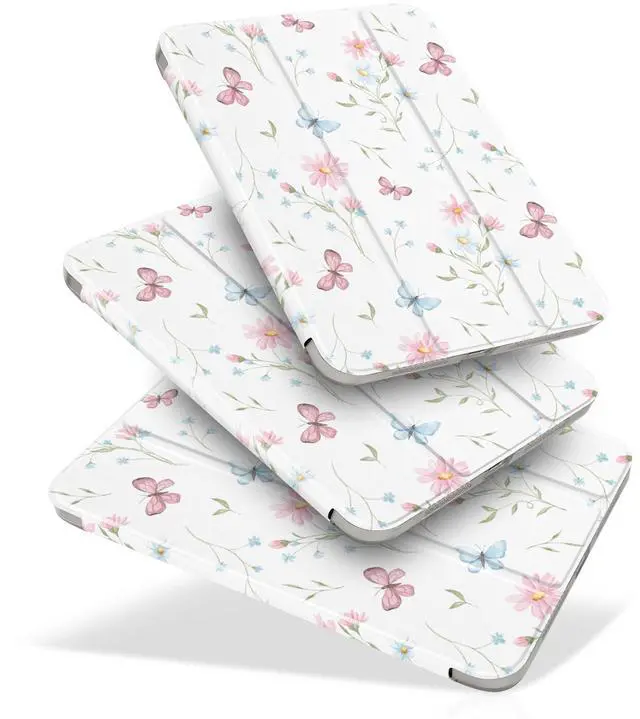 MecBevia for iPad mini 7 (A17 Pro) 8.3-inch 2024(Models A2995/A2996/A2993) / iPad mini 6 8.3-inch 2021(Models A2567/A2568/A2569), 7th/6th Gen Hard Back Case with Auto Wake/Sleep, Butterfly Flower