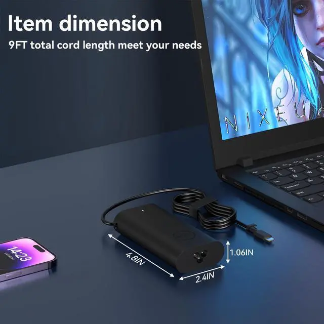 OSISZI 100W 65W USB-C AC Adapter Compatible with Dell Pro 16 14 Plus PC16250 DB14250 16 DB16250 Pro 14 13 Precision 3580 3581 5680 XPS 14 9440 2-in-1 PD3.0 Fast AI Power Cord Laptop Charger