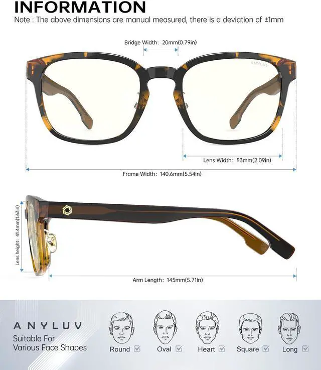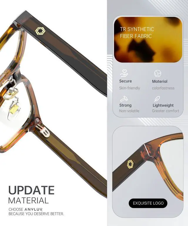 Trendy Blue Light Glasses: Designed with square frame and ANYLUV logo decor temple, very exquisite and fashion style. These anti blue light glasses help show a sophisticated look that complement any outfits, whether you're working or casual daily life.