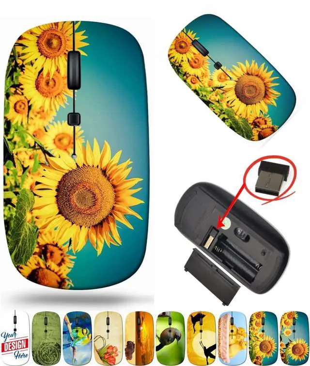 maizi Mouse Wireless for Mac Computer Personal Laptop, Mice Wireless Image ID: 30002156 Sunflower Field Under Lightweight 2.4G with USB Receiver Printed in USA