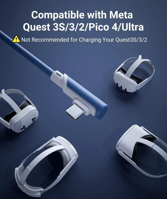 Compatible with Meta Quest 3S/Quest3/Quest2/Pro/Pico4 Accessories: Syntech link cable connects your VR devices to a gaming PC so that you can play all Steam VR games, providing perfect PC VR experience. The color and design of the cable match perfectly with the Quest3S/Quest3, Quest2 headset. (Note: Please update your VR headset system and computer's link software to the latest versions for a stable high-performance wired link.)