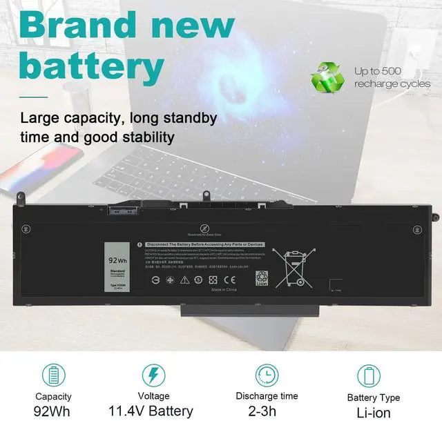 (Note: the VG93N battery ONLY fits for the laptop with a M. 2 SSD storage. ) ^^ Compatible Laptop ModelsDell Latitude 15 5580 5590 5591 E5580 E5590 E5591, Dell Precision 15 3520 3530 M3520 M3530 Series. ^^ SecurityAll batteries are UL/CE-/FCC-/RoHS certified for safety and packed with a variety of safety features, including short circuit, overheat, and overload protections. Strict guidelines for compatibility, and standards compliance for environment safety. Grade A cells ensure fast charges and low power consumption; Built-in circuit protection ensures both safety and stability. 100% New from Manufacturer. ^^ WarrantyAll of our product have12 Months Warranty and 24 x 7 hours Email Support. If you have any question, please contact us.