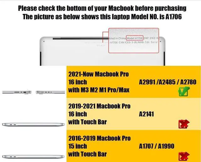 Only Compatible with MacBook Pro 16-inch M4 M3 M2 M1 Pro/Max (2024 2023 2022 2021 Late Release) Model A2485 A2780 A2991 A3403. Please double check your MacBook's model number "A1xxx" on the bottom of the laptop to determine the compatibility. ^^ Not compatible with MacBook other model, Such as MacBook Pro 16-inch Model A2141 2019/2020/2021 Version. If you look for other model Case, Please click "se7enline" below the title ^^ Premium Quality Matte Finish Hard Shell Plastic Case for Silky-smooth soft-touch protect your MacBook against shock, scratch, dusty and other damage ^^ Easy to put on and take off and Plug your charger, cable or headset without removing the protective case.