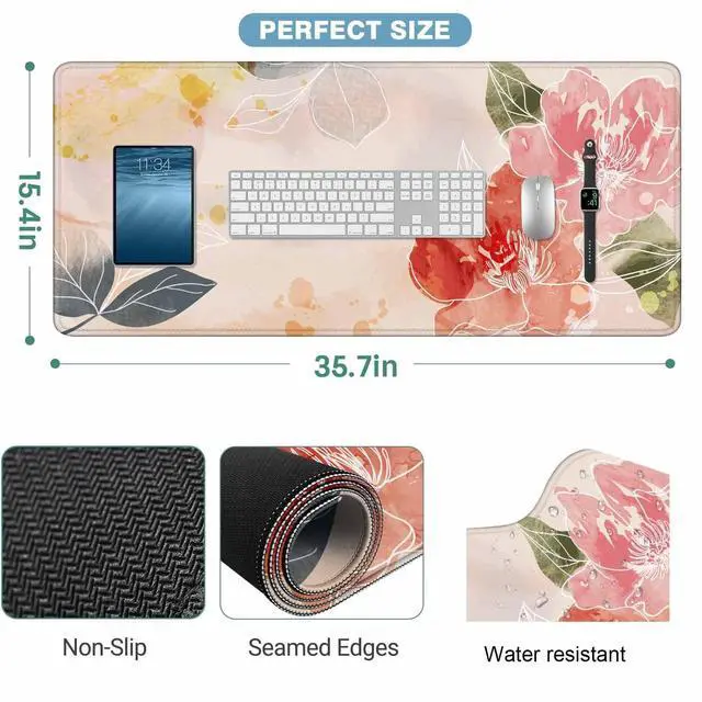 • 35.4"x15.7"x0.11" Extended Size Desk Mat :Large mouse pad design makes it provide plenty of room to place your mouse,keyboard and other desk items.protecting your desk while you playing games or working.