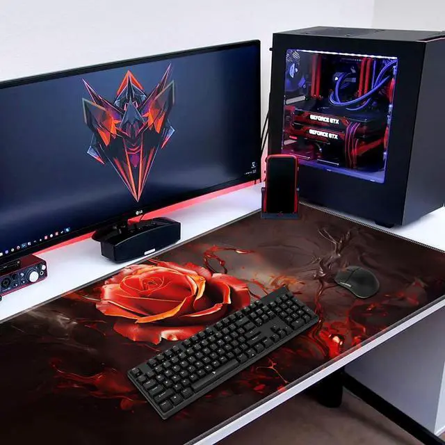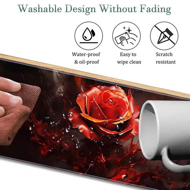 Extended Gaming Mouse Pad 31.5" x 11.8", with Edge Stitching, Non-Slip Rubber Base Keyboard Pad, Suitable for Work, Game, Office, Home and Coasters, Art Red Rose