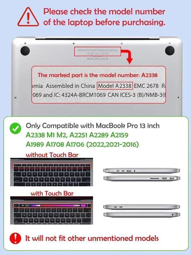 Package Include: 1 * Case Compatible with MacBook Pro 13 2016-2022 Release + 1 *