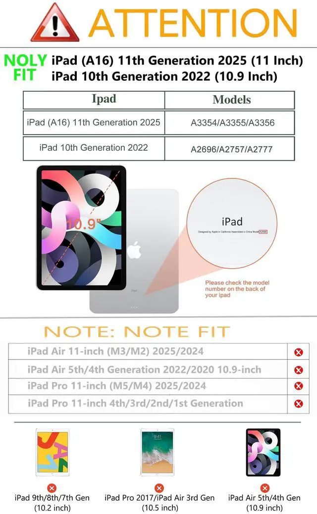 degree angle stand: Adjust different angles to get a better viewing experience; Built-in Pencil holder-to grab or carry Pencil easily and conveniently (Pencil is NOT Included! ). High Quality Material-Made of reinforced external PU leather dual layer construction, soft TPU shell interiorVivid Fresh Pattern-A wide range of colors and patterns for you to choose and collect from us to personalize your life. Precise Cutouts- Access to all features (ports, speakers, controls and cameras)Smart Auto Sleep/Wake-Built-in magnetic strip automatically wakes when opened and puts it to sleep when closed to conserve battery lifeHighly Protective-Premium PU leather front cover with soft shock-absorbing TPU back shell protect screen as well as the back from drops, bumps and scratchesPackage Included1x Case for iPad (A16) 11th Generation Case 11 Inch 2025, for iPad 10th Generation Case 10.9 Inch 2022AttentionsThe color of actual items may slightly vary from the images due to different monitors. If you have any issues with the item, please feel free to contact us, we will get back to you as soon as possible.